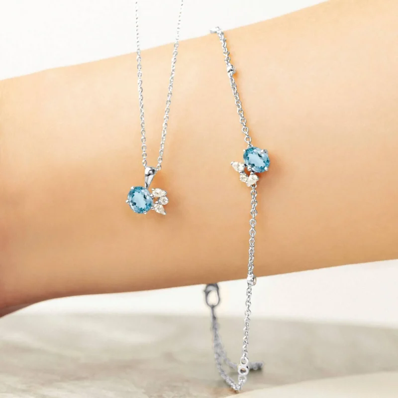 Bracelet en Or Aigue-Marine et Diamants – Moribana