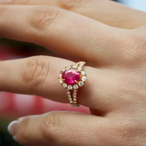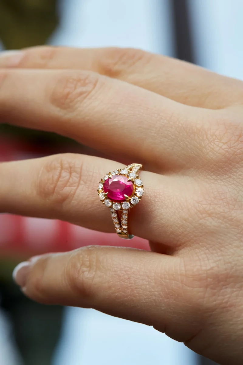 The 1.58-carat Burmese ruby ring in 18K yellow gold, designed for Mathilde, is more than a piece of jewelry — it’s a made-to-measure statement of style.