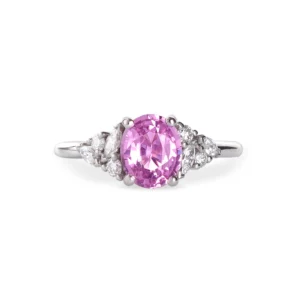 Mai ultimately chose the 1.25-carat pink sapphire ring in platinum — Florale — featuring a vivid pink sapphire from Madagascar.