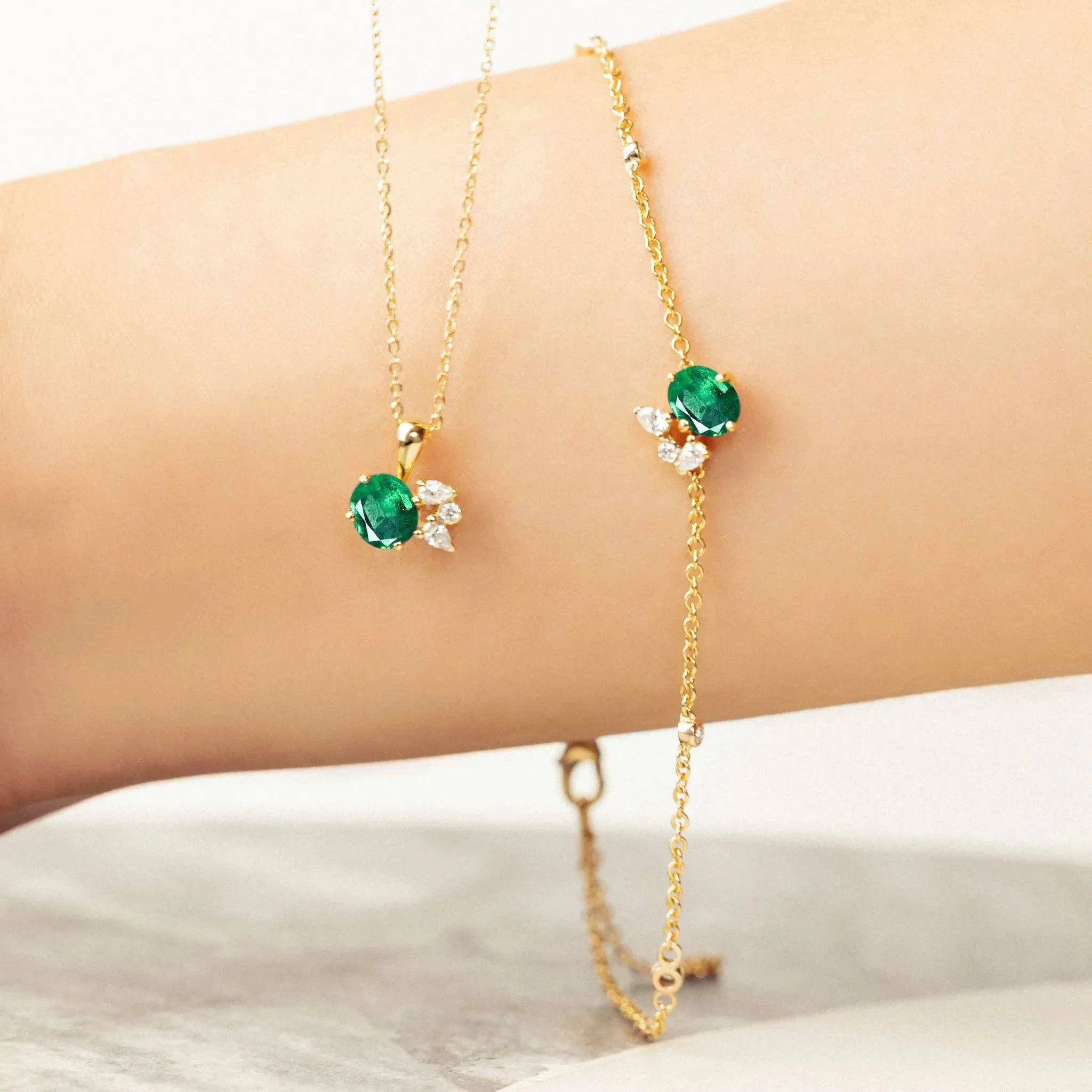 Experience the timeless elegance of the Moribana 18K gold bracelet with emerald and diamonds.