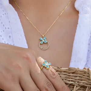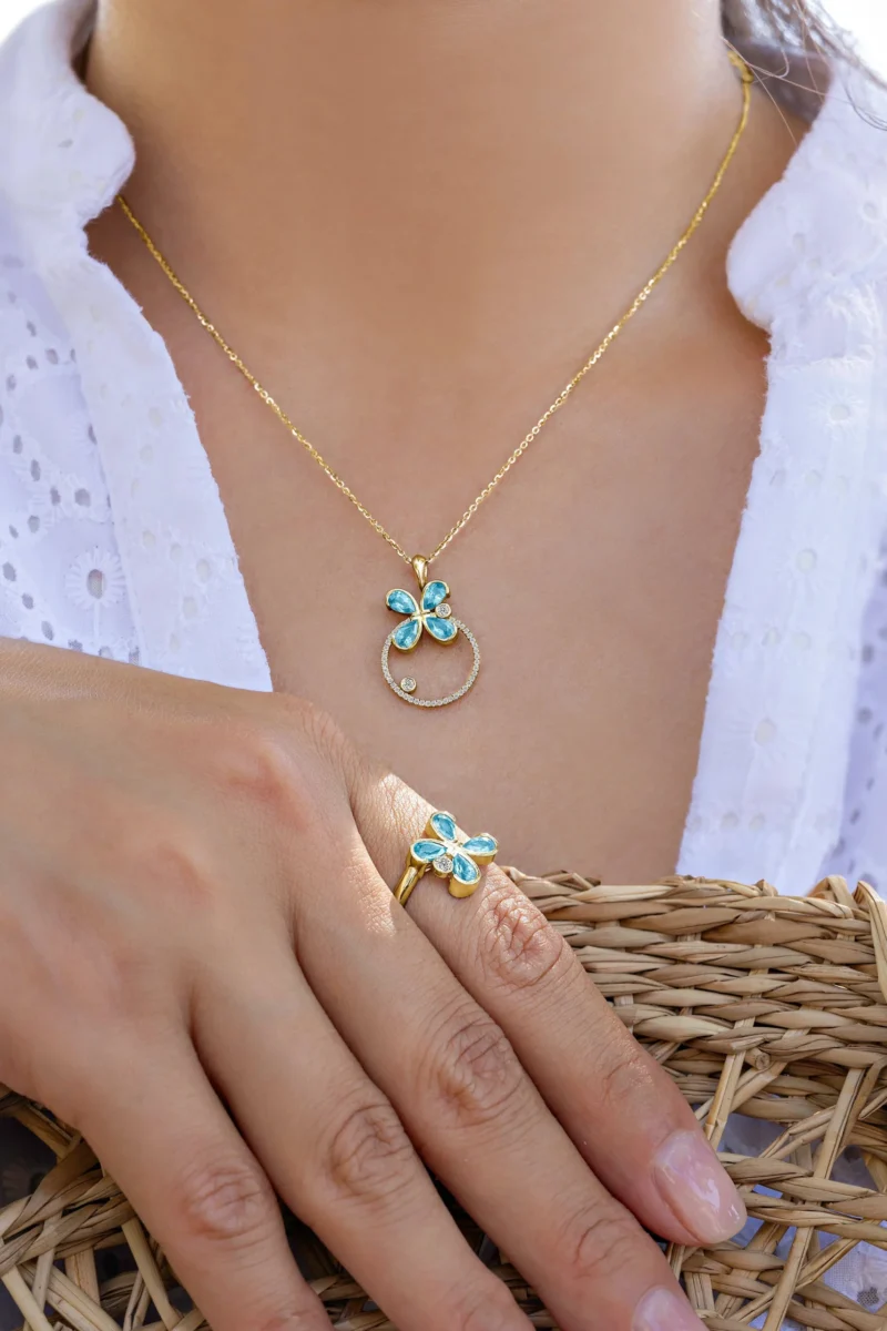 This bespoke 18K gold necklace captures nature at its peak — a symbol of growth and flourishing after a journey of transformation.