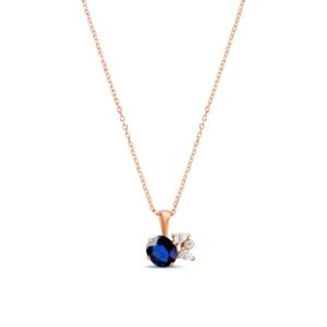 At the heart of this piece, a royal blue sapphire of 0.90 carat is beautifully framed by two pear-shaped diamonds and one round diamond, totaling 0.14 carat.